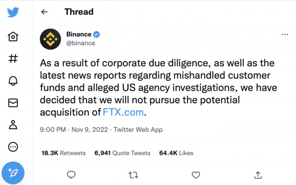 FTX was originally set to be acquired by its rival, Binance. However, after looking at FTX’s books, Binance announced its withdrawal from the deal earlier this month.